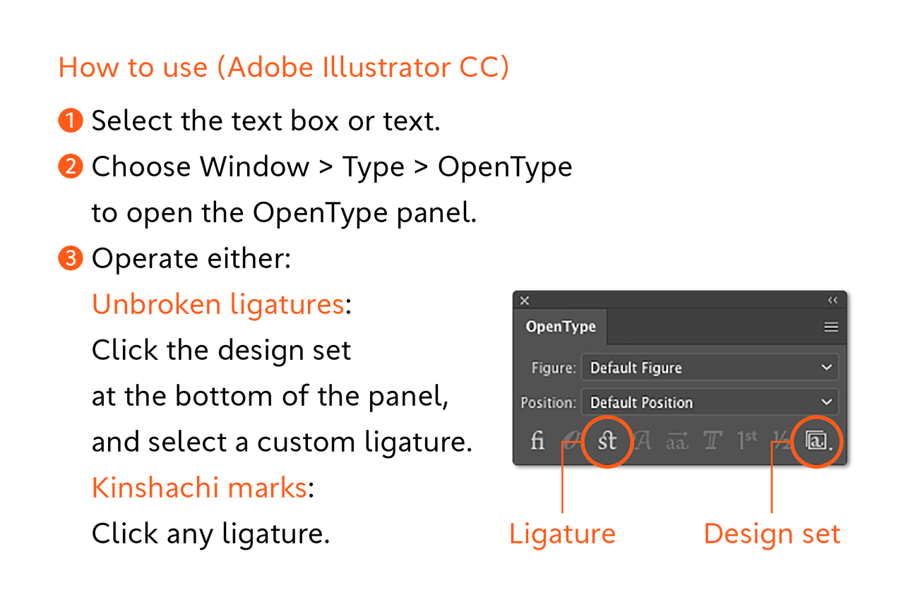 Kinshachi Font was developed as a part of the CityFont Project, in which Nagoya’s cultural symbols were reflected in the design. Kinshachi Font consists of Kanji with elements of unique and gorgeous ornamentation, Kana with a classical atmosphere based on the Heian period, and Latin with ornamental designs; making the most of each individual approach, the font is harmonized as a whole.