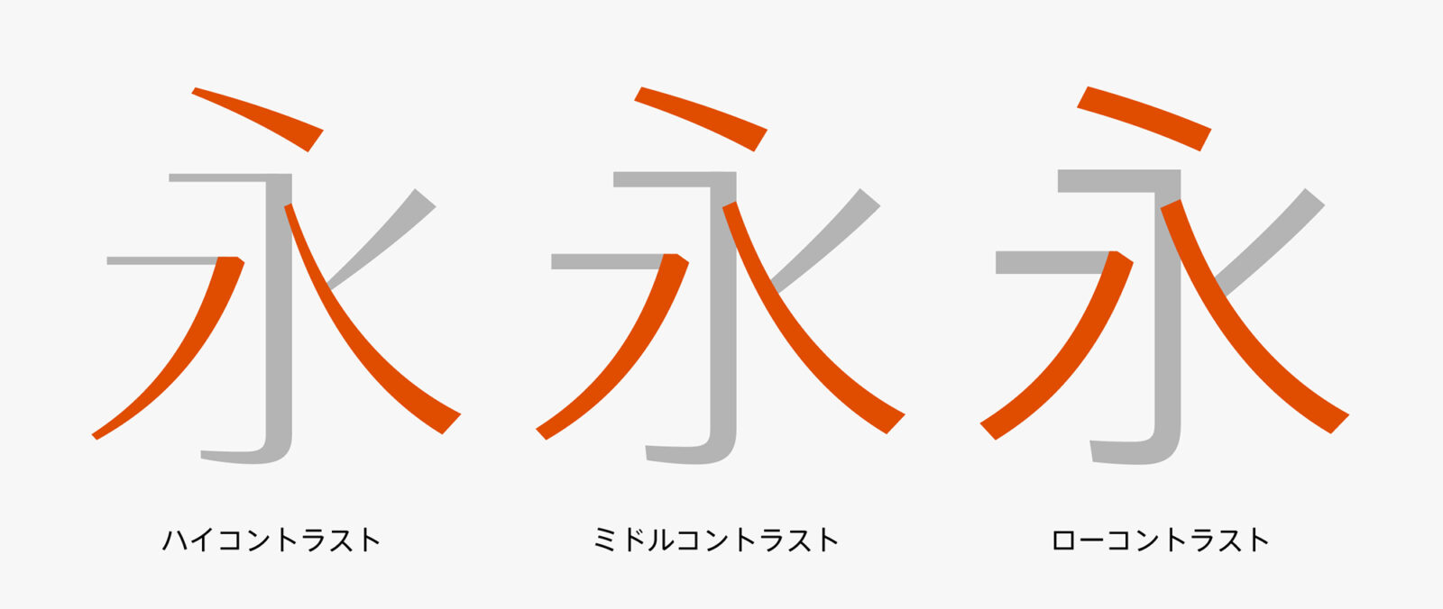 筆の抑揚を取り入れた古典的な表情の「ハイコントラスト」と「ミドルコントラスト」